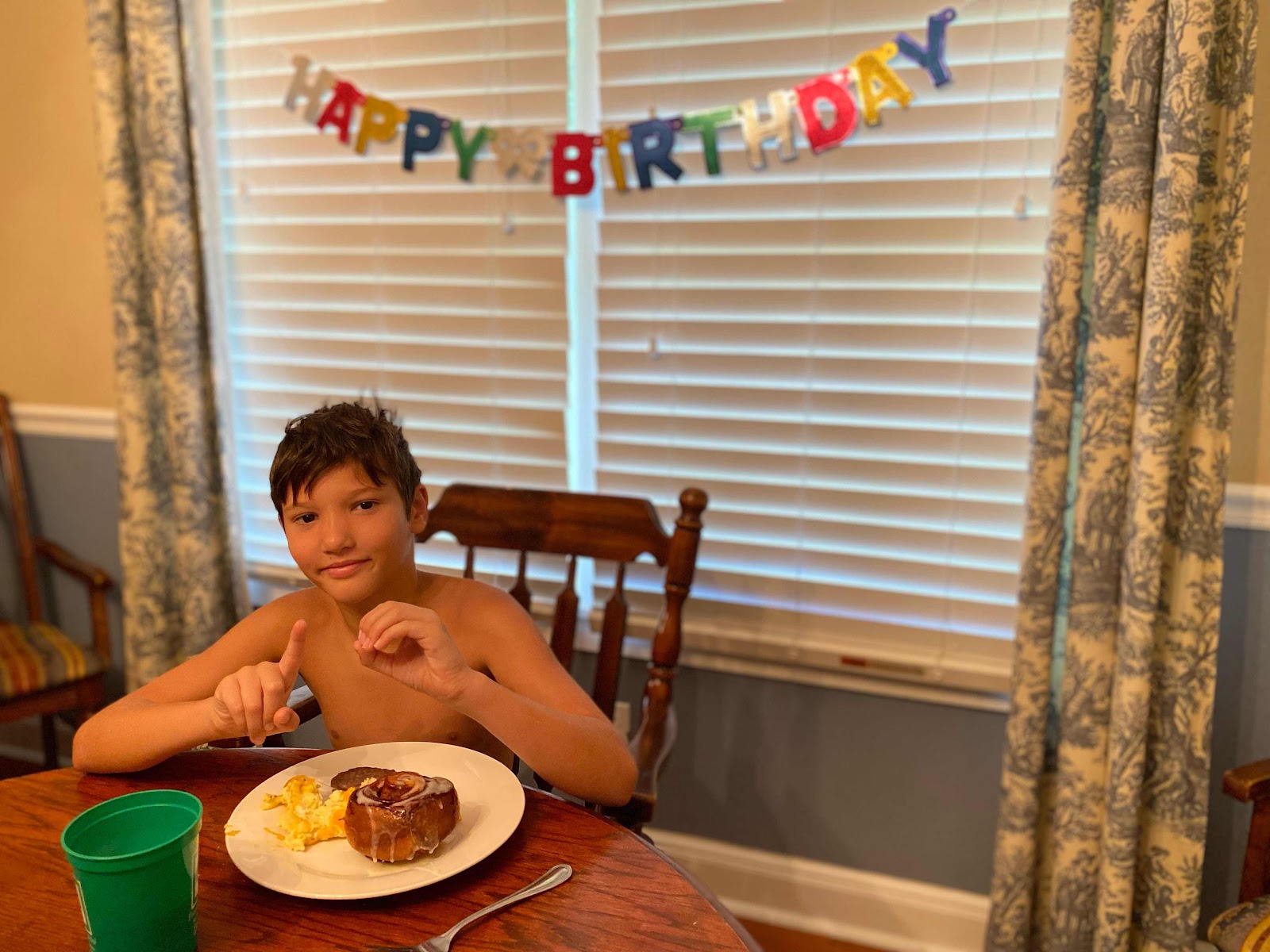 Our baby is now double digits. We had a fun day with family. He requested cinnamon buns for breakfast and shrimp and ribs for dinner with an ice cream cake to finish it off.